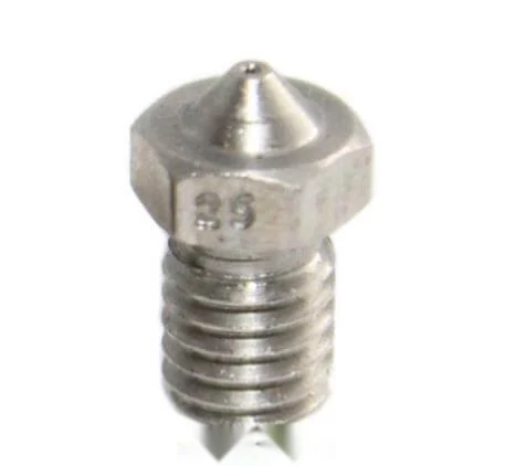 Az anyaguk is számít: a hagyományos bronz vagy réz fúvókák gyorsan kopnak, főleg csiszoló granulátummal erősen töltött filamentek esetén. Ilyenkor érdemes rozsdamentes acél vagy keményfém (pl. rubin vagy karbid) nozzle-t választani, hogy hosszabb legyen az élettartam.
