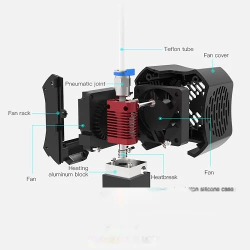 - Heatbreak: hőszigetelő elem, amely megakadályozza a hő átterjedését a filament adagoló részére.