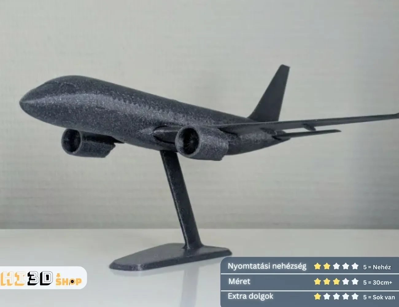2. Méret – Értékelés: 3/5: A modell mérete 25 cm hosszú és 24,5 cm szárnyfesztávolságú, ami közepes méretűnek számít a 3D nyomtatott modellek között.