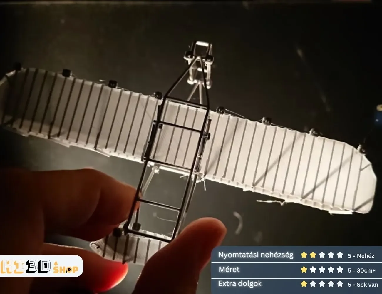 A Wright Flyer modell a repülés történetének ikonikus darabja, könnyen nyomtatható és összeszerelhető.