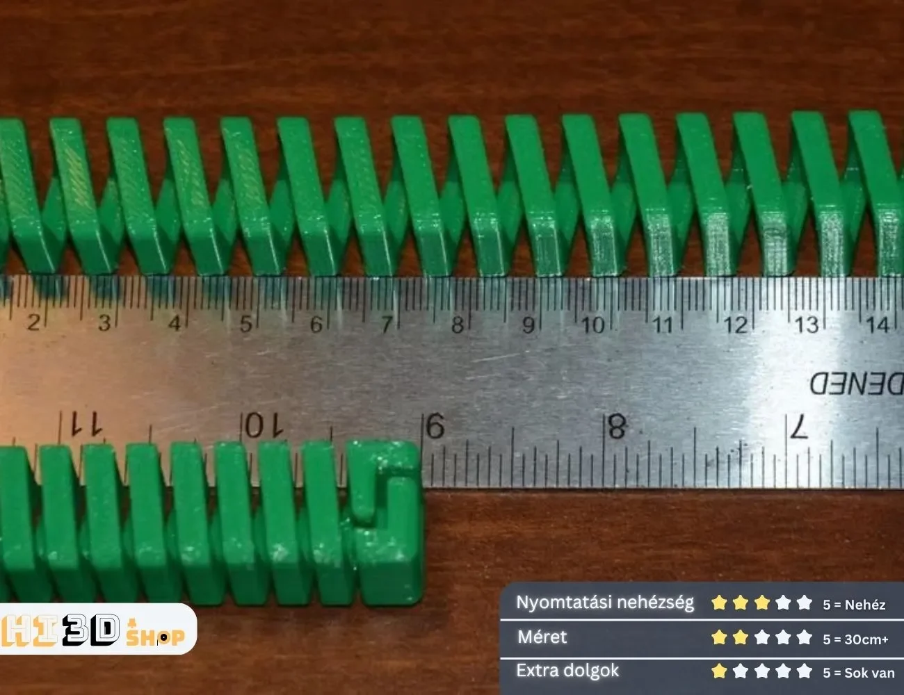 1. Nyomtatási nehézség – 3/5: A moduláris elemek és a csukló-ízület szerű illeszkedés miatt némi kihívást jelent a nyomtatás, de nem elérhetetlen.