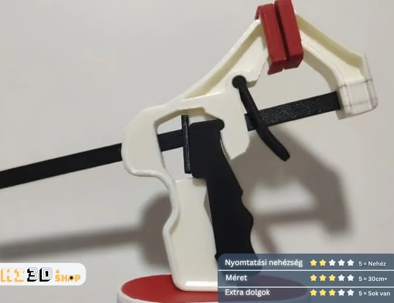 A trigger clamp nemcsak a faiparban használható, hanem sok más területen is alkalmazható. Használható például kötelek rögzítésére kempingezés közben, fémek összefogására fémmunkák során, de számos egyéb felhasználási lehetősége is van. A bilincs több részből áll, és az injekciós öntéses verziók mintájára készült, amelyeket a legtöbb barkácsboltban megvásárolhatunk. A működéséhez rugók szükségesek, amelyek közül sokan valószínűleg már megtalálhatók a régi 3D nyomtató extrudereinkben. A Thingiverse-en elérhető modellhez tippeket találhatunk a nyomtatási irányokról és a szükséges támaszték információról