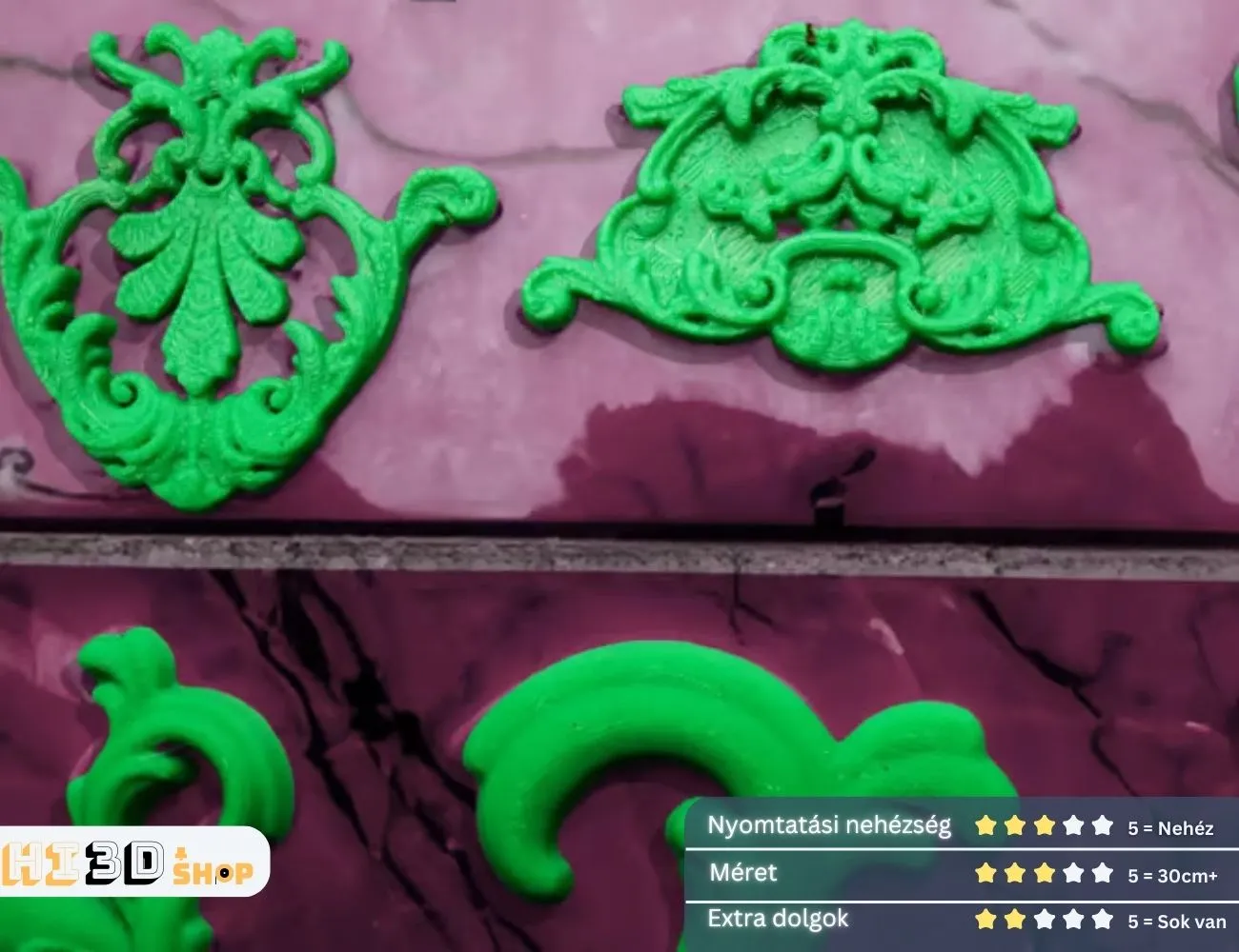 3. Extra dolgok – 2/5: A barokk díszek önmagukban, 3D nyomtatással elkészíthetők, nem igényelnek további alkatrészeket vagy kiegészítőket a használathoz.