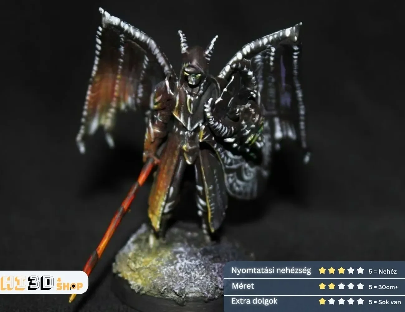 A Tiefling varázsló modell mérete kisebb, mint 15 cm, így könnyen kezelhető és tárolható.