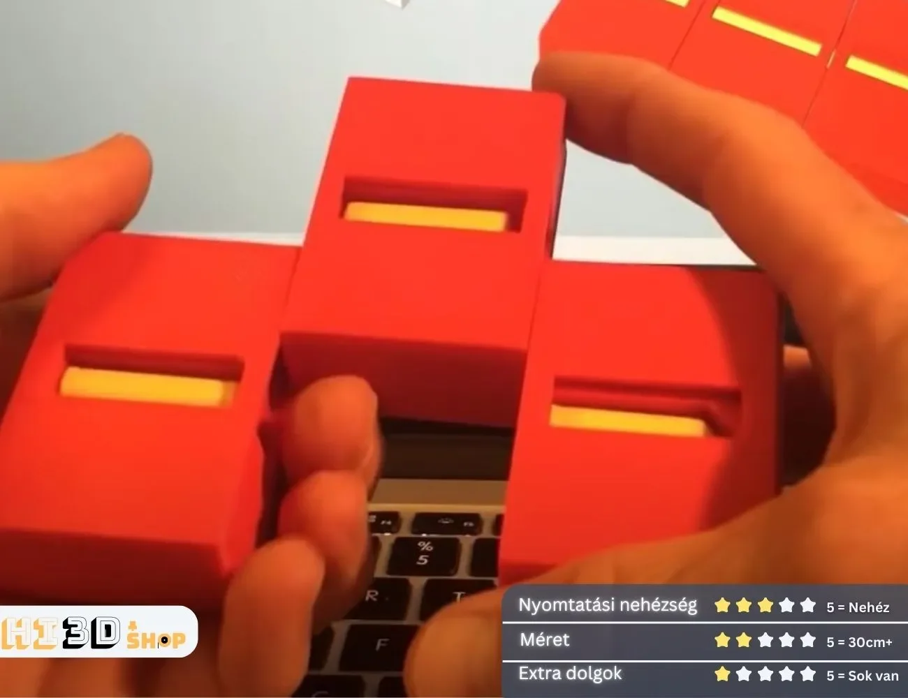 1. Nyomtatási nehézség – 3/5: A modell nyomtatása közepesen nehéz, mivel több alkatrészt kell pontosan illeszteni, és a poszt-feldolgozás is szükséges a megfelelő illeszkedéshez.