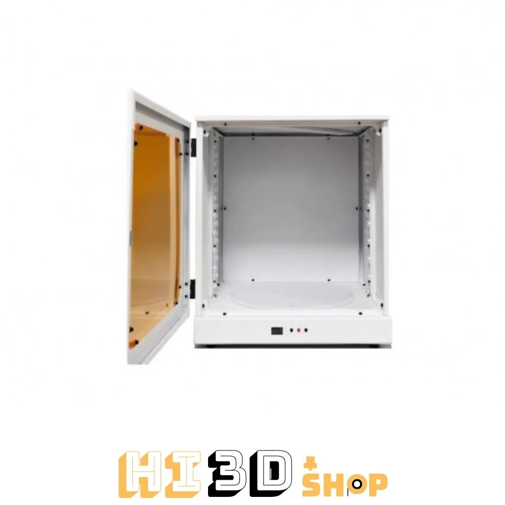 A Peopoly Curing Box Pro UV utókezelő kabin egy speciális eszköz, amely a 3D nyomtatással készült tárgyak utókezelésére szolgál. A kabin belsejében elhelyezett nagy teljesítményű UV LED-ek egyenletes és hatékony utókezelést biztosítanak a nyomtatott objektumoknak. Az integrált forgótálca gondoskodik arról, hogy a tárgy minden oldala egyformán legyen kitéve az UV fénynek, míg az időzítő funkció lehetővé teszi a kezelési idő precíz beállítását. A kabin kialakítása ergonomikus és könnyen kezelhető, lehetővé téve a felhasználók számára, hogy egyszerűen és gyorsan végrehajtsák a szükséges utókezelési folyamatokat. A Peopoly Curing Box Pro UV utókezelő kabin nélkülözhetetlen eszköz minden olyan személy számára, aki 3D nyomtatással készült tárgyakat állít elő, és szeretné biztosítani azok megfelelő szilárdságát és tartósságát.
